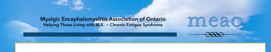 The Myalgic Ecephalomyelitis Association of Ontario (MEAO) An organization representing and supporting the medical conditions of Myalgic Encephalomyelitis/Chronic Fatigue Syndrome (ME/CFS), Fibromyalgia (FM) and Environmental Sensitivities/Multiple Chemical Sensitivity (ES/MCS) Welcome! The Myalgic Encephalomyelitis Association of Ontario (MEAO) is a volunteer-run organization that has been serving the community since 1991. We offer information and support to people living with the illnesses, as well as family members, physicians and other professionals, and the general public. An estimated 1.4 million Canadians have Myalgic Encephalomyelitis/Chronic Fatigue Syndrome (ME/CFS), Fibromyalgia (FM) and Environmental Sensitivities/Multiple Chemical Sensitivity (ES/MCS). 568,000 of those live in Ontario where we are based (Canadian Community Health Survey, 2010). ME/CFS affects people of both genders, all racial and ethnic backgrounds, all classes and all ages including children. Some of our members are newly diagnosed while many others have struggled with these illnesses for many years - many people with ME/CFS have had the illness for twenty years or more. Myalgic Encephalomyelitis/Chronic Fatigue Syndrome (ME/CFS), Fibromyalgia (FM) and Environmental Sensitivities/Multiple Chemical Sensitivity (ES/MCS) often become permanent disabling illnesses. Yet funding for our illnesses is almost non-existent and the MEAO is actively working to secure the funds needed for diagnosis, treatment and community support. Please help us by making an online donation through CanadaHelps; just click on their logo below and help us provide help to over 568,000 people living in Ontario. We offer the following services, in addition to this website: